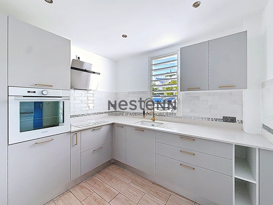 A louer, cet appartement de 3 pièces situé à Moudong Sud Baie Mahault, d'une surface de 59.36 m², est idéal pour ceux qui recherchent un cadre de vie agréable et pratique. Situé au rez-de-chaussée d'un immeuble de 1 étage, il comprend 2 chambres, une salle d'eau et un WC. La cuisine est ouverte, aménagée et équipée, et les chambres sont climatisées. L'appartement est en bon état général, rénové recemment avec une belle cuisine tout équipée et ouverte sur le séjour. Il dispose également d'une terrasse de 2.63 m² et d'un séjour spacieux de 19.85 m². Le bien est situé dans un emplacement privilégié sécurisé, à proximité de tous commerces, avec un voisinage agréable. Les commodités incluent un accès PMR, un digicode, un portail électrique, ainsi que la possibilité de fibre optique. Un stationnement extérieur est également disponible. Ce bien est proposé par l'agence NESTENN Baie-Mahault sous un bail habitation (Loi 89). Ne manquez pas cette opportunité de vivre dans un cadre calme et idéalement placé. Réservez votre visite en appelant l'agence Nestenn de Baie-Mahault au xx-xx-xx-xx-xx ou Samuel au xx-xx-xx-xx-xx. Les honoraires de locations sont de 779 euros à la charge du locataire. "Les informations sur les risques auxquels ce bien est exposé sont disponibles sur le site géorisques : www.géorisques.gouv.fr"