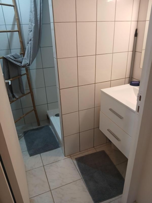 L 'appartement est composé d' un séjour avec coin cuisine, un dégagement, une chambre climatisée avec salle d'eau attenante, un WC indépendant, une terrasse.