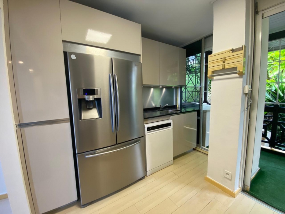 Situé au premier étage l'appartement comprend : une belle cuisine fonctionnelle équipée et aménagée d'un réfrigérateur américain, un four, une plaque à induction, un lave vaisselle. Une loggia de 6m2 donnant sur une jolie vue jardin, deux chambres climatisées, une salle d'eau, un WC indépendant , un séjour lumineux lui aussi équipé d'un climatiseur, une loggia de 9m2 idéale pour prendre le petit déjeuner.