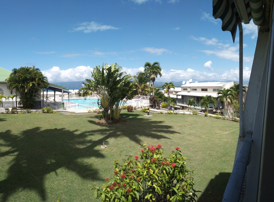 Très beau studio en RDC surélevé, donnant sur la piscine de la résidence, avec une magnifique vue mer et montagne.