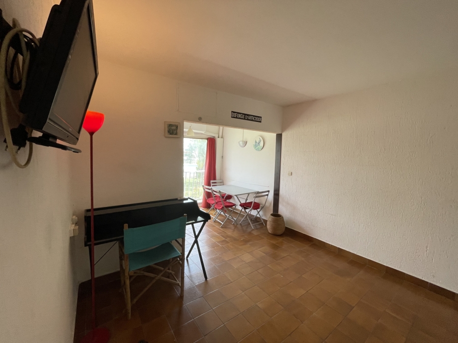 Entièrement meublé et équipé, il est composé d'une grande pièce de vie avec placards et rangements, une salle d'eau avec WC, une kitchenette sur terrasse.