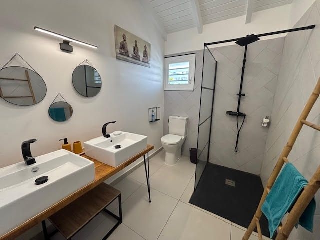 Magnifique appartement moderne avec son jardin privatif clos situé dans un quartier résidentiel avec vue mer et accès plage sur la commune du Moule.