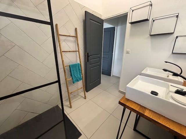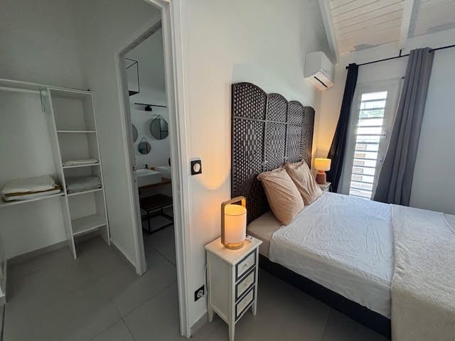 Situé à l'étage il vous offre une pièce de vie de plus de 36m² avec son espace salon/séjour et sa cuisine aménagée et entièrement équipée. Un espace nuit composé d'une chambre climatisée avec son balcon vue mer, une deuxième chambre climatisée avec un espace dressing et une salle d'eau/wc.