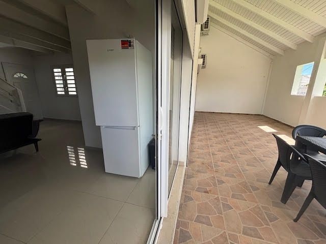 Exclusivité Orpi, magnifique appartement meublé proche des commodités! Il se situe au 1er et dernier étage d'un petit bâtiment composé de 3 appartements dans le centre ville du Moule au calme dans une rue très peu passante. Il se compose d'une pièce de vie spacieuse et lumineuse avec sa cuisine aménagée et équipée, une très grande terrasse couverte d'environ 33m², une chambre climatisée et une salle d'eau/wc. A l'étage deux chambres climatisées , un wc indépendant ainsi qu'un espace offrant la possibilité de se faire un coin bureau. L'eau est comprise dans le loyer, EDF à la charge du locataire. Le plus de cet appartement, il est équipé d'une citerne tampon donc pas de coupures d'eau. Disponible de suite! A visiter rapidement. ORPI, partenaire de votre projet immobilier. Retrouvez-nous sur www.orpi.com.