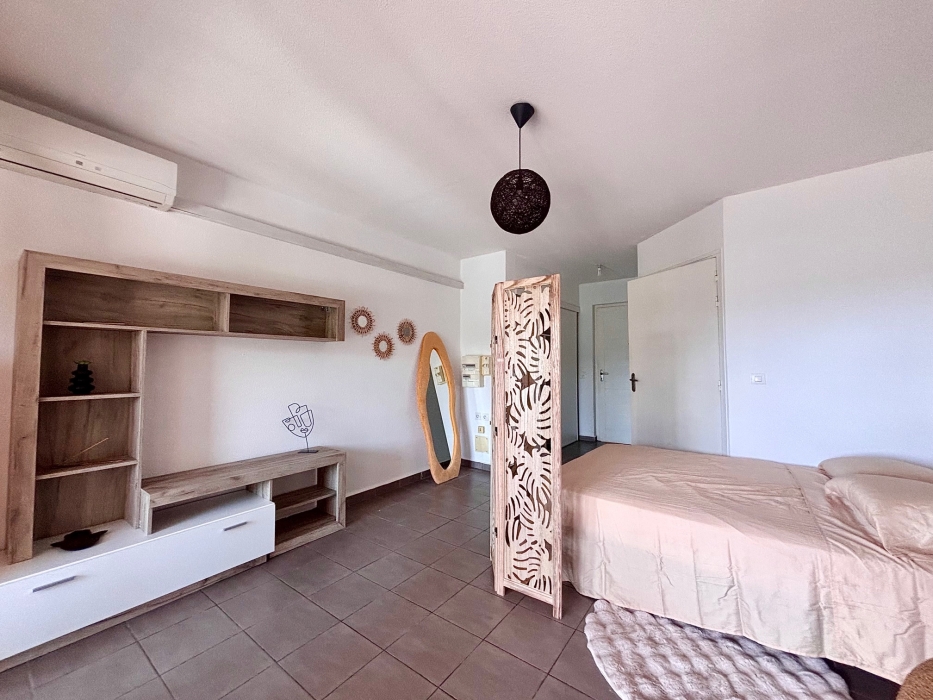 Ce bien offre une pièce principale lumineuse aménagée, la cuisine équipée se situe sur la terrasse, offrant un espace de vie agréable et aéré.Le studio dispose également d’une salle d’eau moderne avec WC.Une place de parking privative est incluse avec le logement.