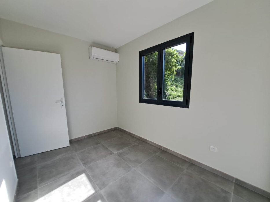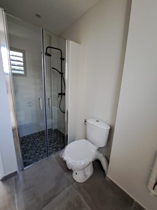 D'une surface habitabe d'environ 48m2, il comprend: un salon avec cuisine ouverte aménagée, une chambre climatisée avec placard, un pièces de plus 8 m2 climatisée pouvant servir de bureau ou de chambre enfant, une salle d'eau avec wc intégré et une varangue d'environ 14m2.