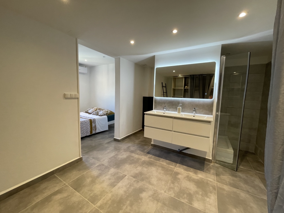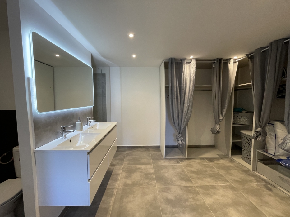 Il se situe au 1er et dernier étage d'une résidence de 4 logements, dans un environnement calme et se compose d'une grande terrasse ventilée de 30m2 avec une vue sur les montagne, un séjour lumineux, une cuisine séparée entièrement équipée, un dégagement donnant accès à trois chambres climatisées et équipées de rangement dont une suite parentale avec salle d'eau, WC et dressing privatif, une autre salle d'eau avec WC indépendant.