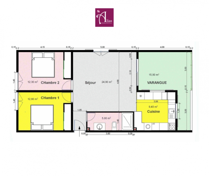 L’appartement se compose de deux chambres confortables, d’une salle d’eau fonctionnelle avec WC, et d’un agencement fluide, idéal pour une vie quotidienne agréable et pratique.