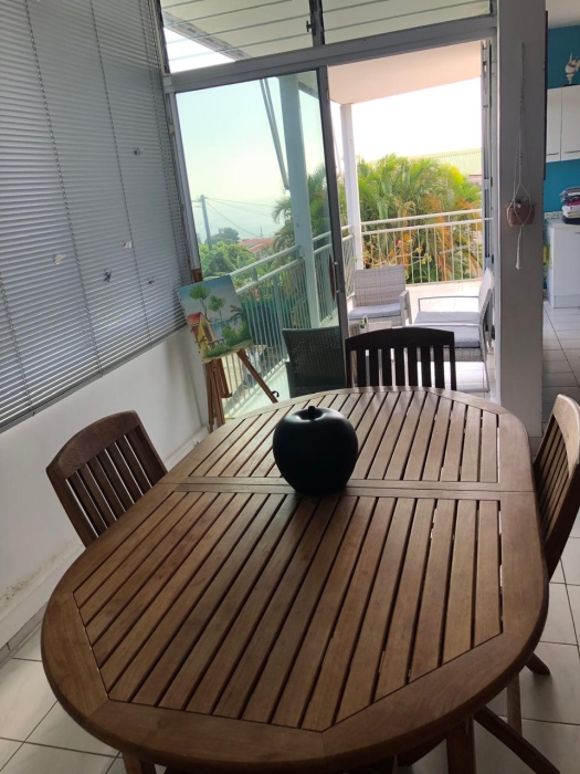 Quartier Ducharmoy, à 200 mètres du collège au 1er et dernier étage d’une petite résidence avec piscine, découvrez cet appartement de115m2 + véranda de 17m2 de trois chambre climatisées, un séjour, deux salles d'eau et une galerie. Charges comprises (EDF, eau, internet, tv d’orange).