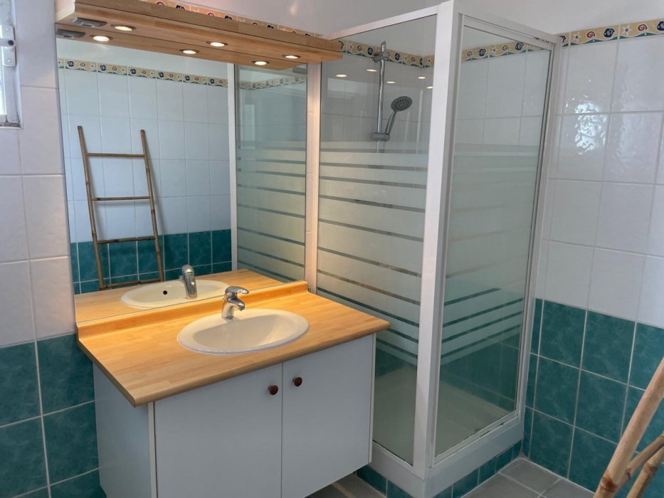L'appartement offre une grande terrasse couverte avec une vue dégagée , un séjour lumineux , une cuisine américaine aménagée et équipée , un cellier , un dégagement , deux chambres climatisées avec dressing, une salle de douche. ,un wc indépendant , une place de parking et un garage box individuel de 18 m2.