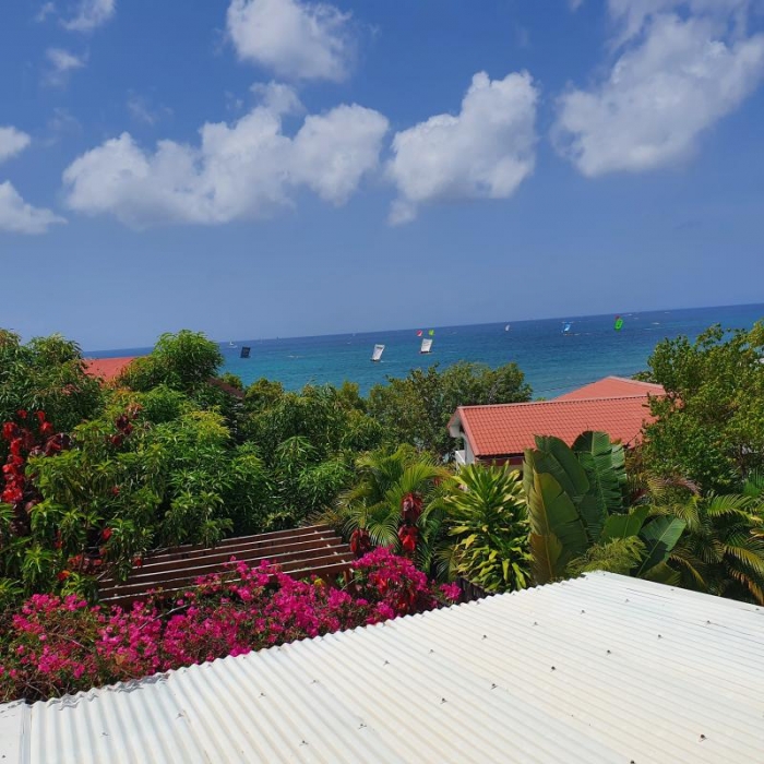 SAINTE LUCE QUARTIER GROS RAISIN. Haut de villa de 3 pièces meublé à louer avec belle vue mer. Il se compose de : Un séjour, une cuisine, 2 chambres climatisées, une salle de douche et un wc indépendant. Une grande terrasse.