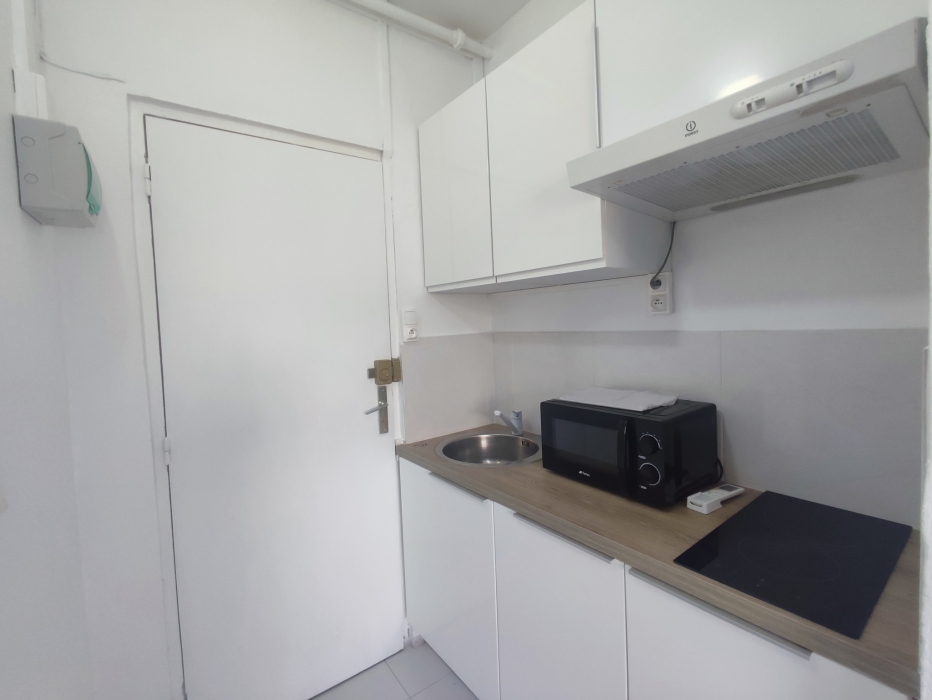 Au premier étage d'une ancien hotel, il comprend une pièce principale climatisée très luminueuse avec un dégagement aménagée d'une kitchenette semi équipée et une salle d'eau avec WC.