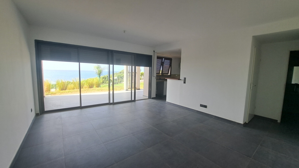 Une entrée, deux chambres climatisées, une cuisine aménagée ouverte sur le salon/séjour, un cellier, deux salles d'eau et deux WC et une belle terrasse avec vue imprenable sur la mer.