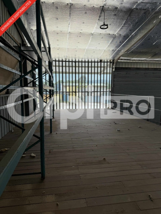 une mezzanine pouvant servir de zone de stockage complémentaire.