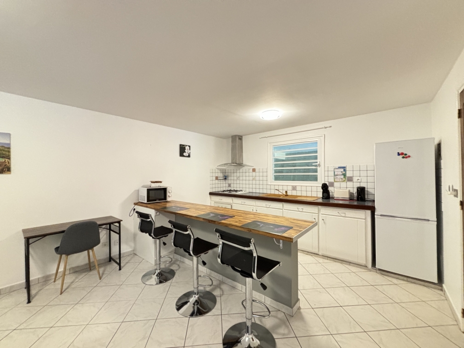 Entrez par la cuisine ouverte sur un séjour spacieux et lumineux. Sur votre gauche, découvrez un couloir qui donne sur les WC indépendants, la salle d'eau et la chambre climatisée.