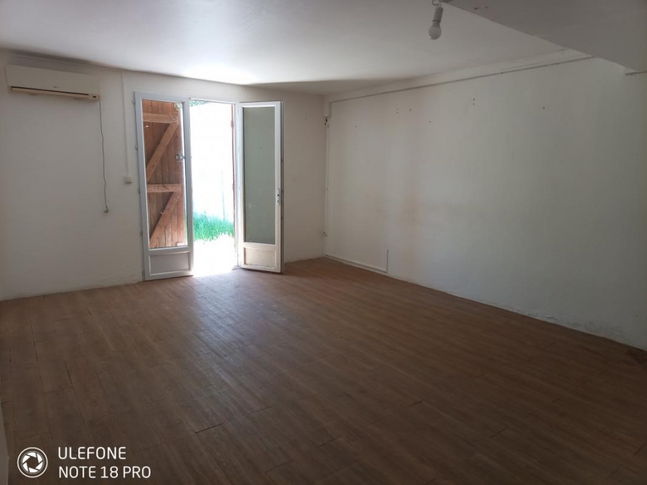 Au rez-de-chaussée, en descendant l'escalier sur la droite : un dégagement avec placards, deux studios dont une avec sa terrasse (travaux à prévoir), les deux avec un accès jardin, leur salle d'eau et ou wc attenant chacun.