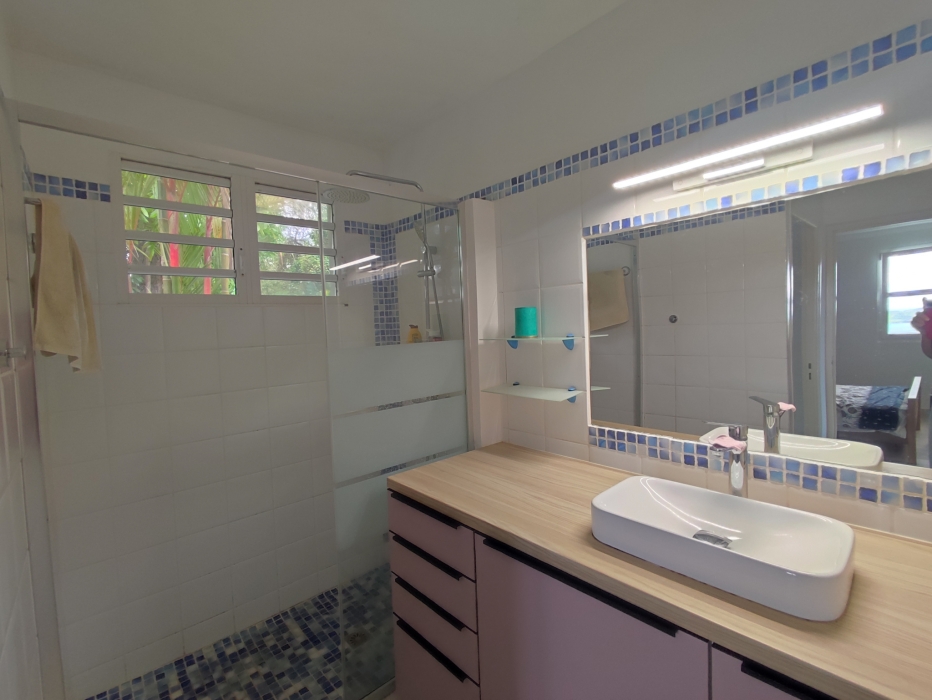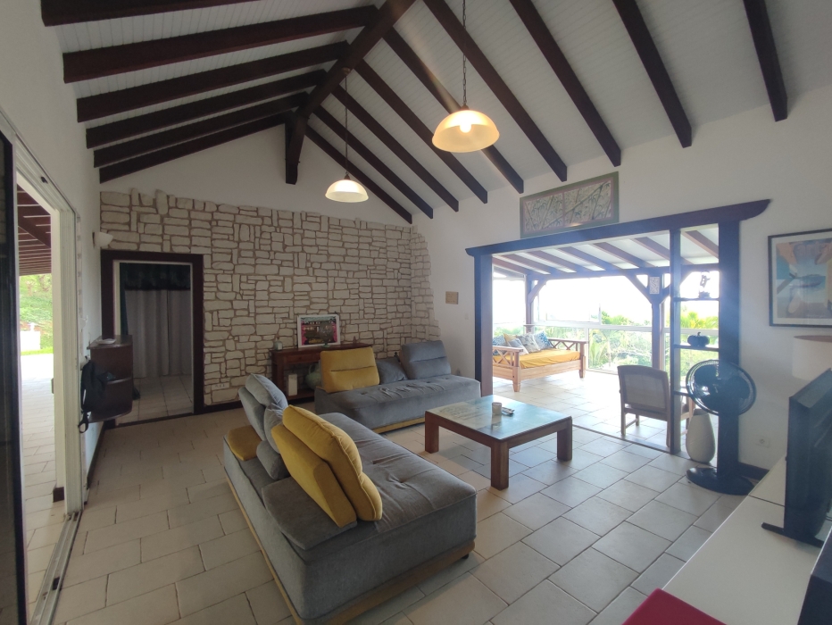 Offrant une magnifique vue mer, cette maison de plain pied comprend un salon avec un salon prolongé par une veranda, une cuisine séparée et entièrement équipée, trois chambres dont une suite parentale climatisée avec dressing et salle d'eau avec WC séparée attenante, deux autres chambres climatisées avec placard qui partage une salle d'eau avec WC, un WC indépedant et une grande terrasse couverte.