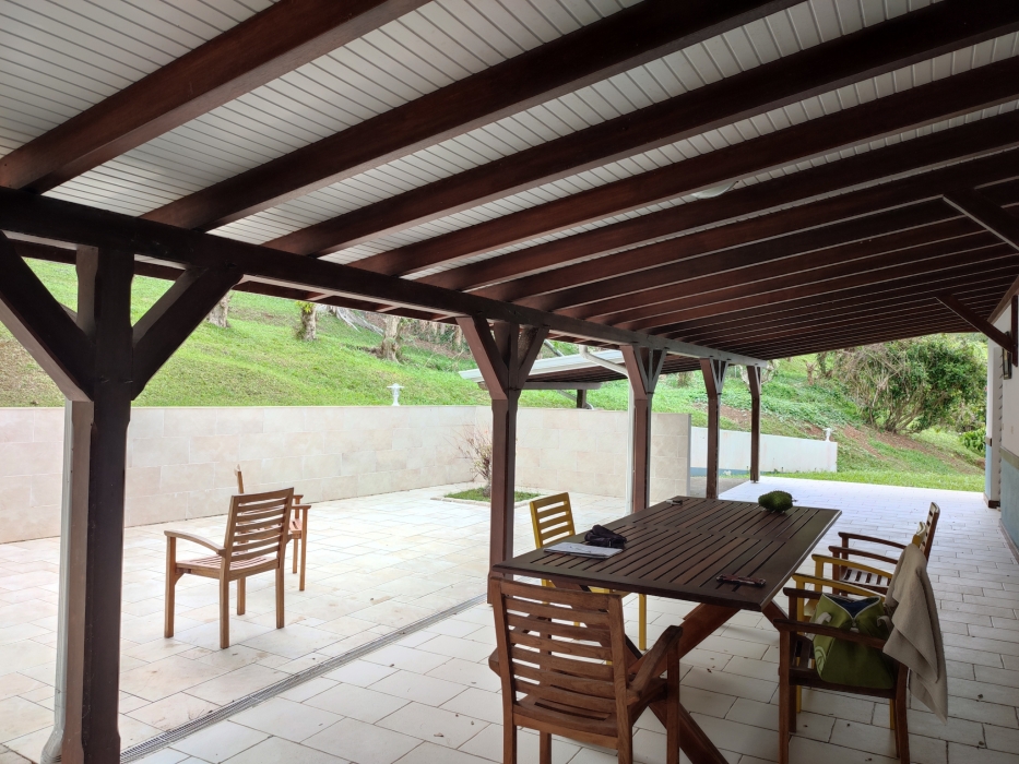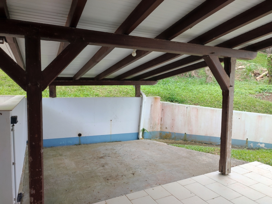 Il dispose également d'un grand espace vert et de plusieurs places de stationnement ainsi que d'un garage couvert équipée d'un meuble avec évier et d'un espace buanderie.