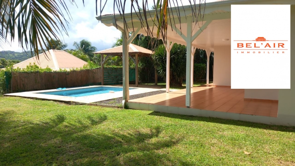 Charmante maison de type F4 dans une résidence sécurisée. Elle se compose d'un séjour, d'une cuisine aménagée ouverte avec cellier, trois chambres dont une suite parentale et sa salle d'eau attenante, une seconde salle d'eau, un wc indépendant et une belle terrasse couverte. Une jolie piscine et un carbet.