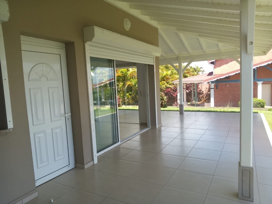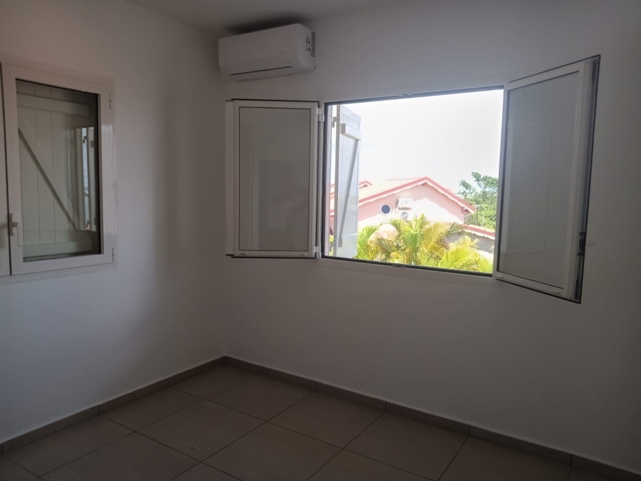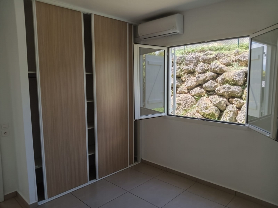 Le rez-de-chaussée comprend : un séjour avec une grande baie vitrée donnant sur une varangue, une cuisine semi-équipée avec plaque de cuisson, meubles de rangement et emplacements prévus pour four et lave-vaisselle. Une chambre climatisée avec placard, une salle d’eau avec WC.