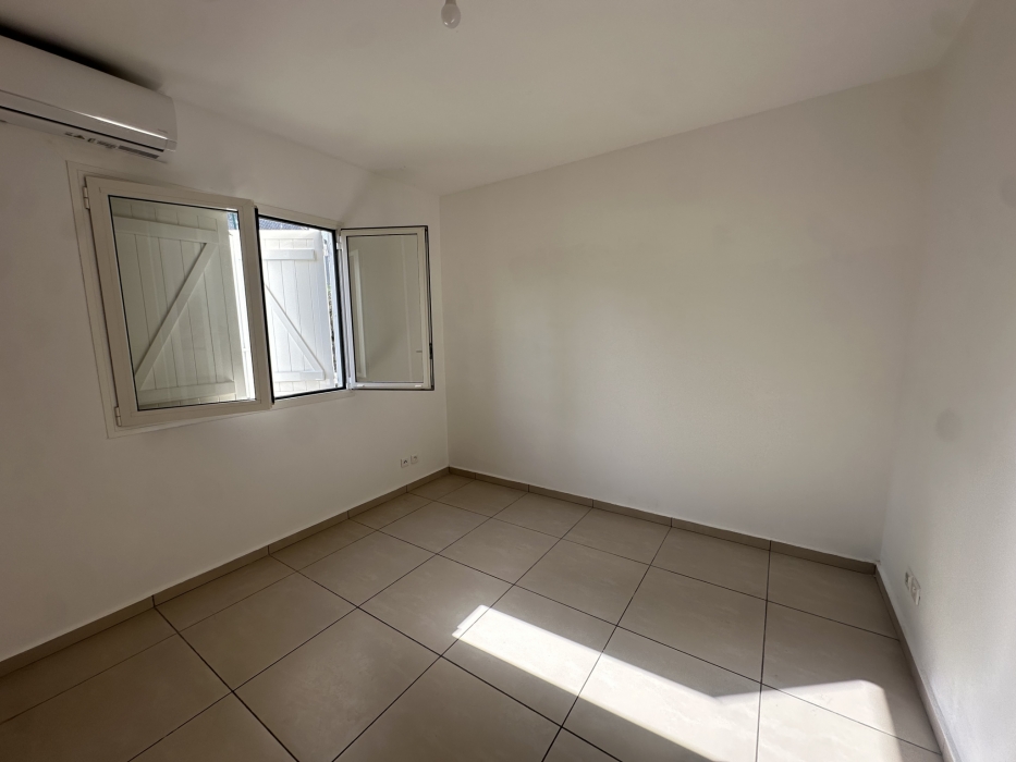 À l’étage : deux chambres climatisées avec placards, une salle d’eau avec WC.