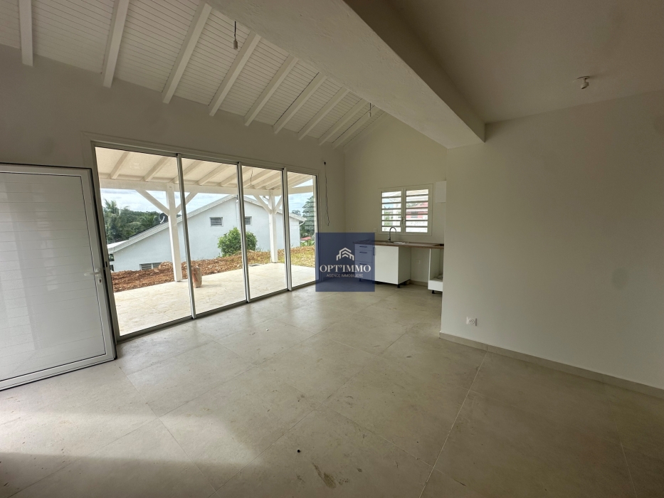 Bonne prestation pour cette villa composéed'un espace séjour/cuisine d'environ 30 m2 : séjour avec grandes baie vitrées donnant sur une varangue de 20 m2 , une cuisine semi équipée (meubles derangement, emplacement four et lave -vaisselle), et un cellier.
