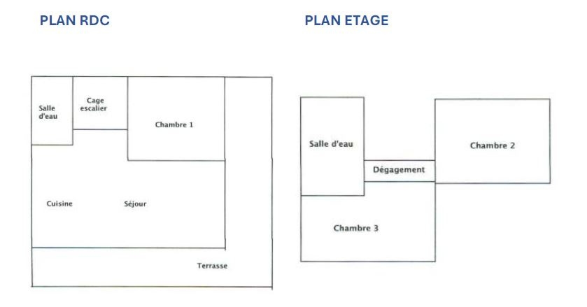 A l’étage : 2 chambres dont 1 de 11.47m2 et 1 une de 15.08m2