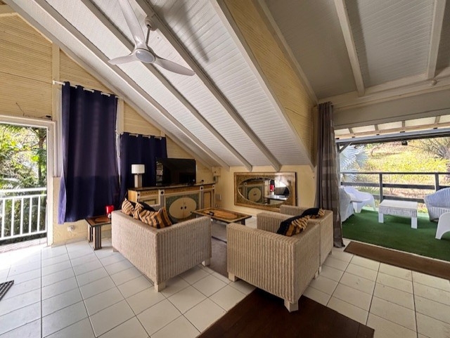 Votre agence Longfort Immobilier située aux Abymes vous présente ce haut de villa avec terrasse et jardin à Prise-d'eau sur la commune de Petit-Bourg.