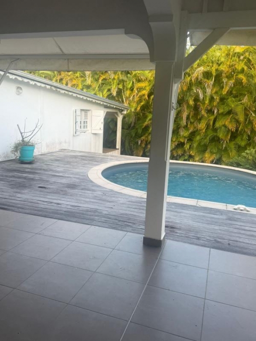 Une villa indépendante meublée avec studio attenant (meublé), de type T5 composée d'un séjour avec cuisine aménagée et équipée, un bureau climatisé, trois chambres climatisées dont une avec sa salle d'eau/wc, un dégagement, une salle de d'eau / wc. Une terrasse couverte, une piscine et un jardin clos avec garage/appentis au fond du jardin. Portail électrique. Eau, électricité internet, entretien du jardin et de la piscine à la charge des locataires. Disponible de suite.