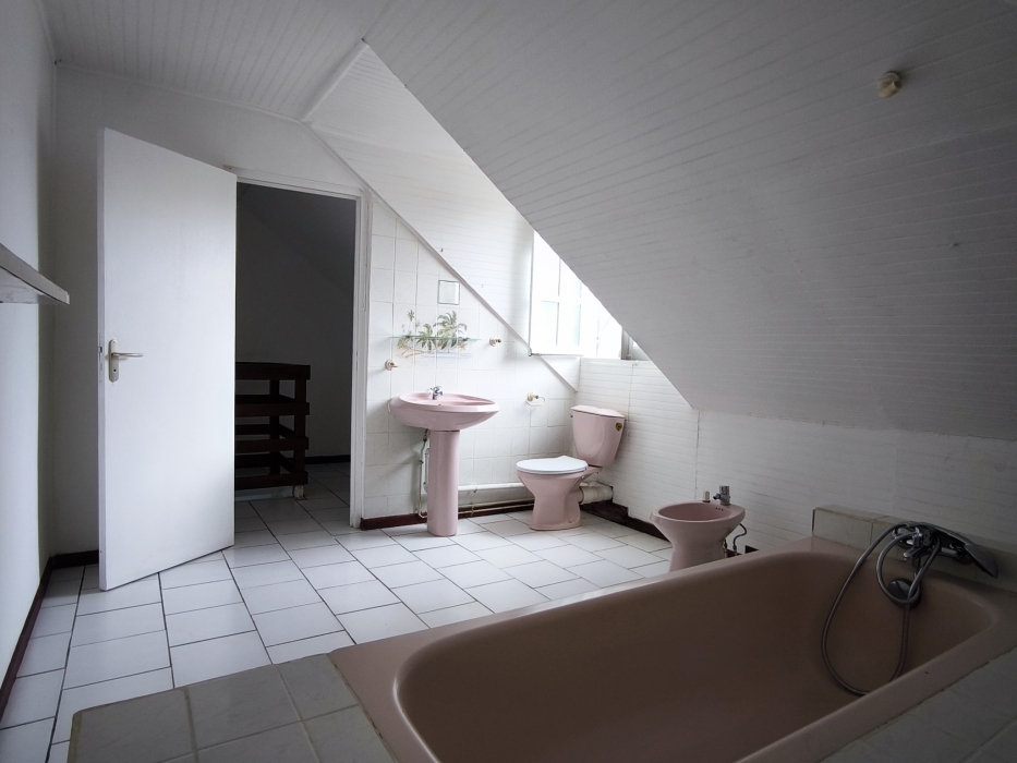 Au 1er étage : deux autres chambres qui se partagent une salle de bain avec WC et un dégaegement dans lequel on peut prévoir du rangement.