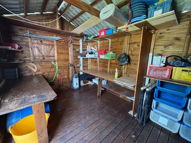 Elle vous propose également un beau jardin arboré et clos, une citerne tampon et un cabanon de jardin d'environ 8m².