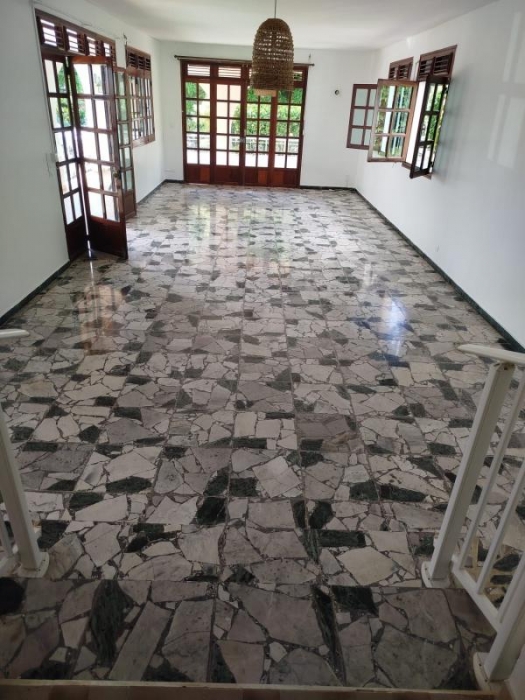 Elle comprend un grand salon de + de 50m2, une cuisine aménagée, une chambre matrimoniale avec sa salle d'eau, 3 chambres, une salle d'eau, un bureau, un garage, une buanderie et un beau jardin arboré.