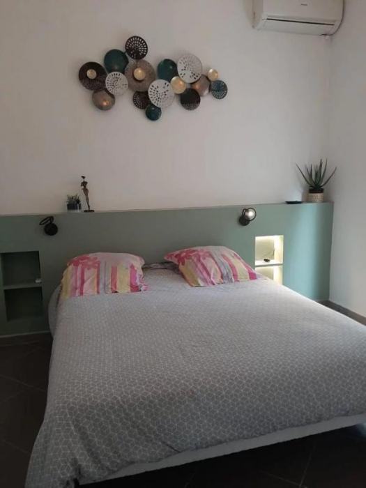 Villa T4 meublée 140m² habitable comprenant : 1 cuisine aménagée et entièrement équipée avec ilôt central donnant sur 1 séjour, grande mezzanine avec rangement, 3 chambres climatisées dont 1 chambre parentale avec sa salle d'eau, 1 dégagement avec placard, 1 salle d'eau avec placard intégré et wc, 1 wc indépendant, 1 cellier, 1 dressing, 1 grande terrasse avec deck tout autour de la maison, petite piscine, jardin clôturé de 400m².