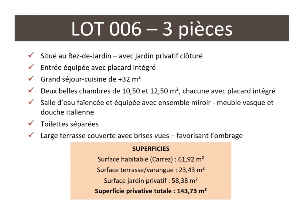 • Terrasse spacieuse : Détendez-vous sur la belle terrasse couverte de 23,43 m2, offrant un espace extérieur idéal pour profiter des douces soirées et des journées ensoleillées en toute intimité.