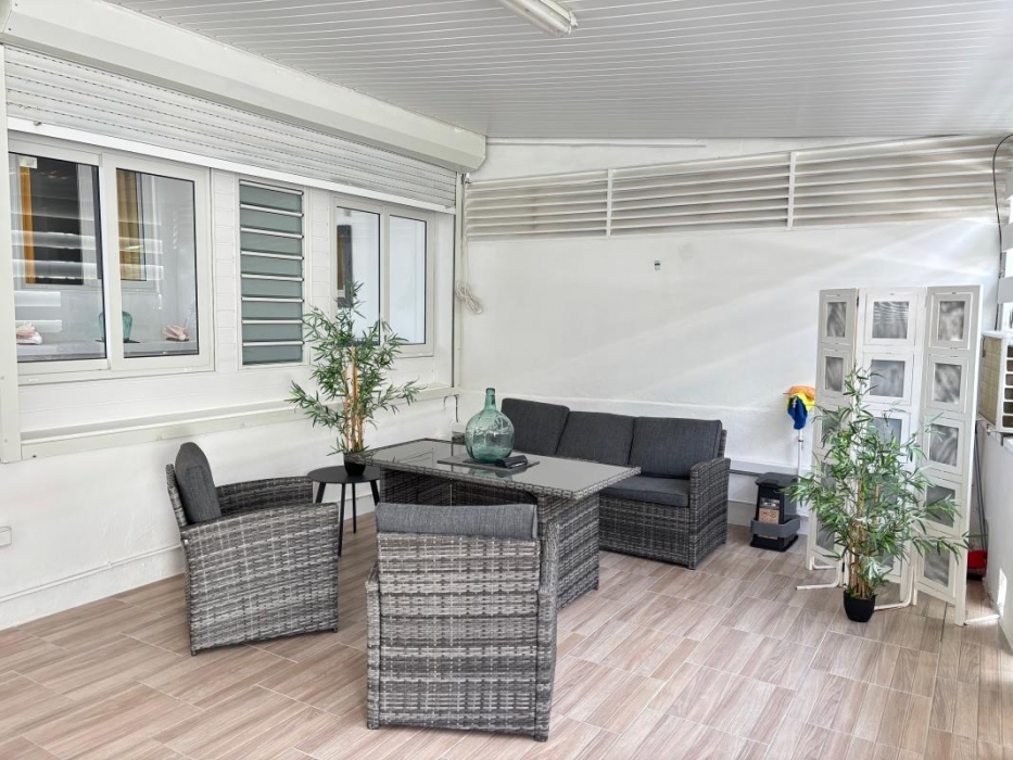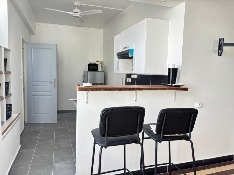 Il est composé d'une véranda transformée en séjour, avec volets roulants, une cuisine aménagée et équipée, une salle d'eau, un wc et une chambre.