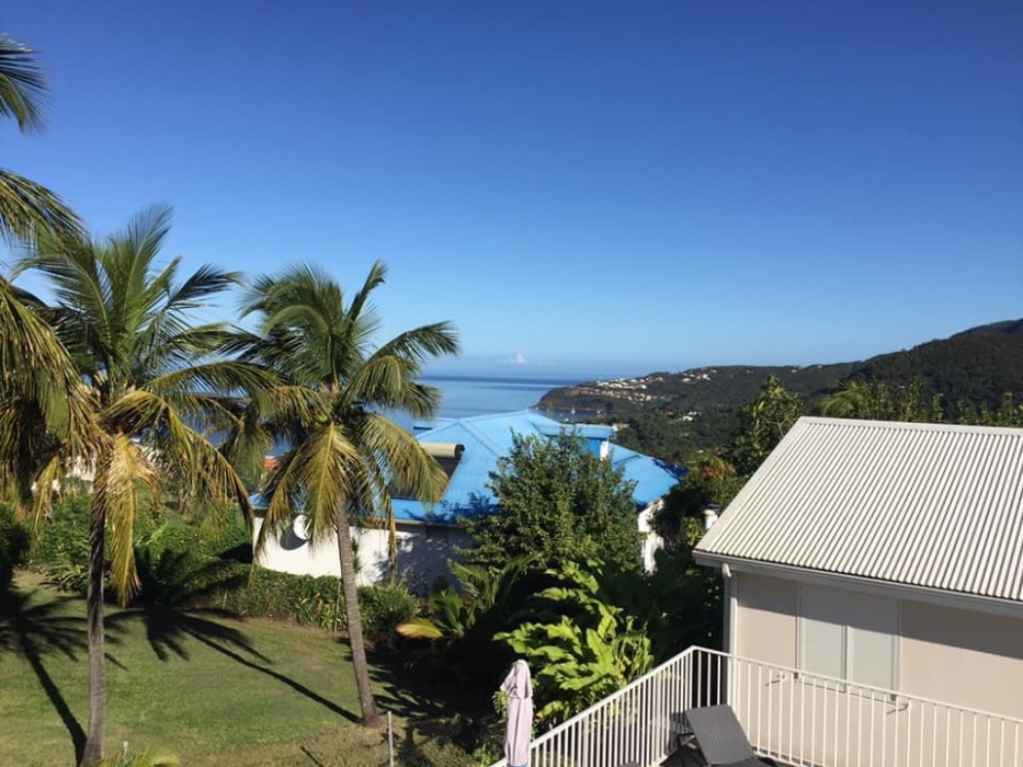Exceptionnelle sur la commune de Bouillante, l'agence Sprimtour vous présente au cœur d'un jardin tropical bénéficiant d'une très belle vue mer, ce joli appartement T2 d'une surface 34 m2 habitable est implanté sur un terrain de 1326 m2 dans une copriété de 7 lots et possède son propre espace jardin d'environ 15 m2.