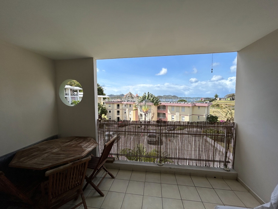 LE MARIN, proche marina, au sein d'une résidence sécurisée, agréable studio offrant une pièce principale avec kitchenette aménagée et équipée, salle d'eau avec WC, terrasse de 12m2. Une place de parking. Copropriété de 178 lots - dont 88 lots habitation. Charges annuelles : 1000 euros.