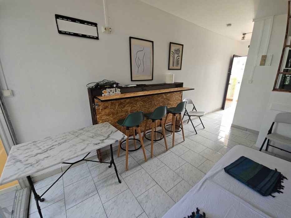 D'une surface habitable d'environ 22 m2, il comprend un espace de vie climatisé et meublé, un coin cuisine équipée, un rangement et un salle d'eau avec toilette intégré ainsi qu'une petite terrasse privative avec vue sur la verdure. Idéal pour un premier achat ou un investissement locatif.