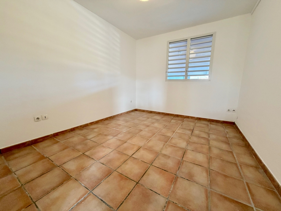 L’espace nuit se compose de deux chambres climatisées, toutes deux équipées de placards, assurant confort et rangements. L’appartement dispose également d’un WC indépendant et d’une salle d’eau avec rangements.