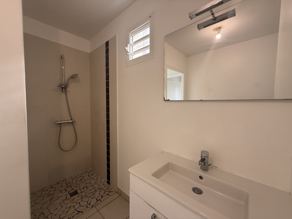 Il bénéficie d'une grande luminosité , séjour -cusine d'environ 25 m2 , une chambre climatisée avec placards aménagés , une salle d'eau avec wc , une terrasse couverte avec vue dégagée et une place de parking .