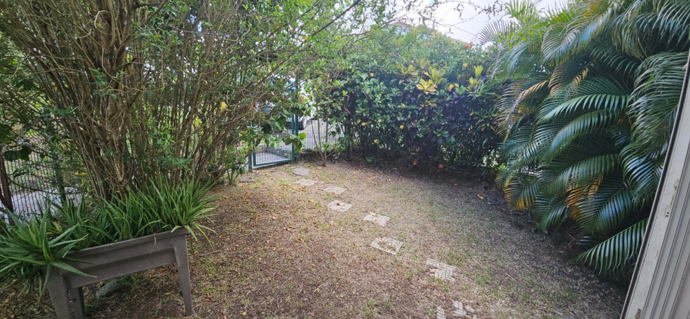 ACS Immobiliers vous propose ce charmant appartement F2 avec vue mer, offrant deux terrasses, un jardin privatif situé dans une résidence calme sur les hauteurs de Schoelcher. Il se compose d’un séjour avec cuisine ouverte, d’un cellier, d’une terrasse fermée et climatisée avec WC indépendant, d’une salle d’eau avec WC, et d’une chambre climatisée avec rangements donnant sur une seconde terrasse couverte qui offre la superbe vue mer. Vous serez séduit par sa vue dégagée, son environnement paisible et son espace extérieur.