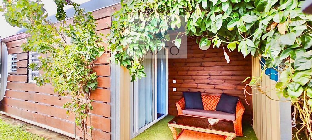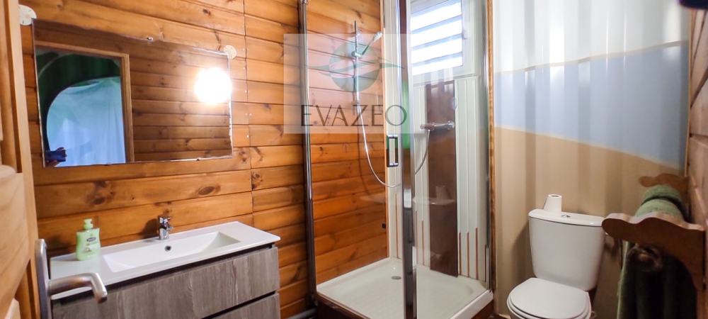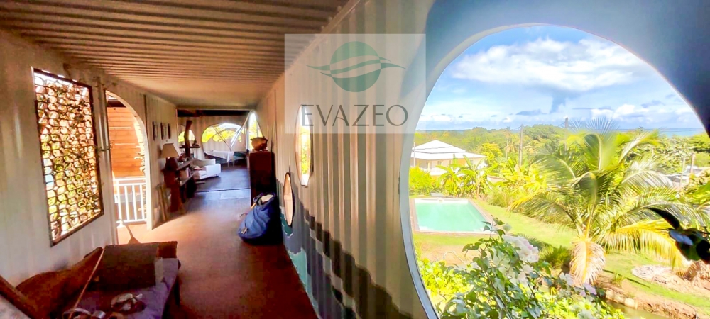 Le terrain arboré et clos de 1 500m2 avec deux portails comprend une grande bâtisse principale de 248m2 construite en containers et bois (format colonial 20 x 10m sur 2 niveaux), un bungalow en bois indépendant de 72m2 avec garage fermé de 24m2 et appartement T2 de 48m2. Surface totale plancher porteur de 320m2 dont 158m2 habitables.