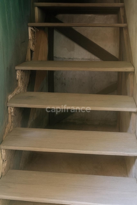 L'accès à l'étage se fait par un escalier ancien en bois, marqué par le temps. En le gravissant, on découvre un appartement de type T3, aujourd'hui vacant. Les volumes sont généreux, les hauteurs présentes, et les matériaux d'origine encore visibles. Les murs portent les traces de la vie passée, témoignant d'un lieu habité, transmis, transformé au fil des années. L'étage nécessite une reprise complète, mais offre une base authentique pour un projet respectueux de l'existant.