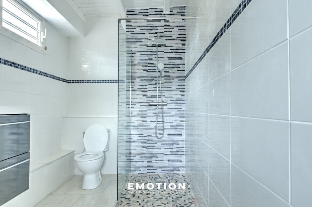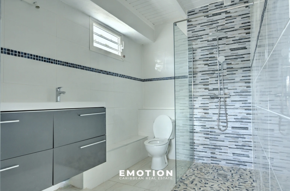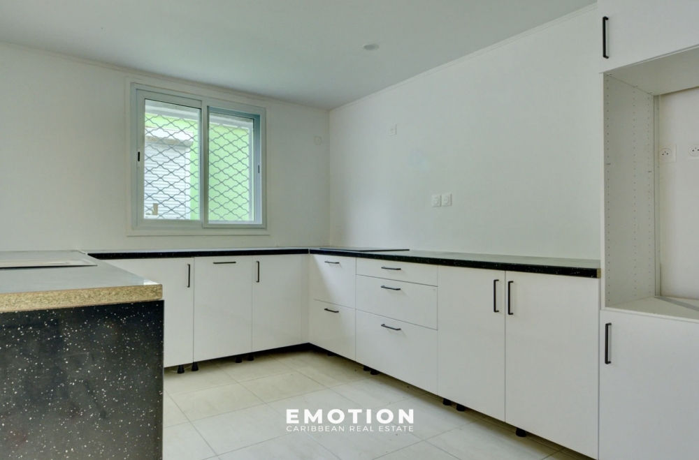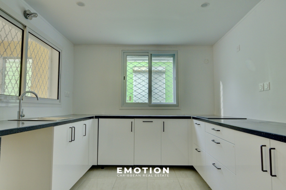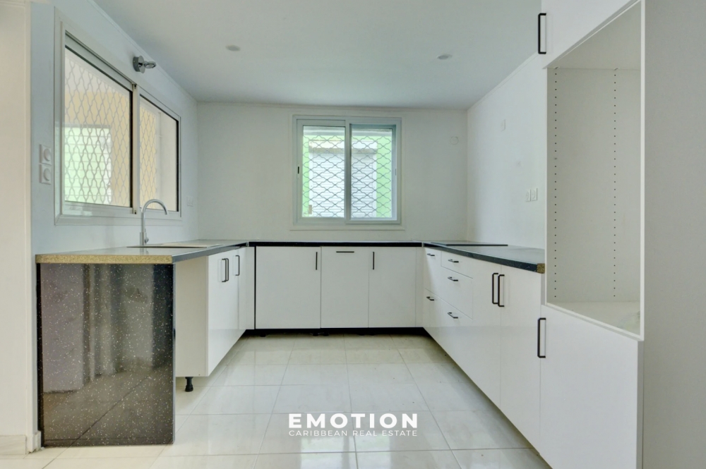 Le cabinet EMOTION Real Estate Guadeloupe vous propose à la vente une maison mitoyenne de 136 m2 entièrement rénovée, offrant de beaux volumes et un confort moderne. Située dans un secteur calme et recherché, à proximité des grands axes et de la ville de Capesterre-Belle-Eau, elle séduit dès l’entrée qui se fait directement par une grande cuisine neuve et entièrement équipée de 28 m2, idéale pour partager de chaleureux moments en famille ou entre amis. Dans la continuité, vous découvrirez un vaste séjour lumineux de 34 m2. L’espace nuit se compose de trois belles chambres dont une suite parentale de 18 m2 avec sa salle d’eau privative de 5 m2 et un accès direct à une terrasse intimiste de 19 m2, ainsi qu’une chambre spacieuse de 19 m2 et une troisième de 12 m2. Deux autres salles d’eau, l’une à l’étage et l’autre au rez-de-chaussée, complètent ce bien pour plus de confort et de praticité. Vous disposerez également d’un garage de 29 m2 (non fermé). Entièrement repensée et modernisée, la maison bénéficie d’une toiture neuve, d’une plomberie et d’une électricité refaites intégralement, de salles d’eau contemporaines, de peintures fraîches, de climatisations récentes et de fenêtres en aluminium performantes.