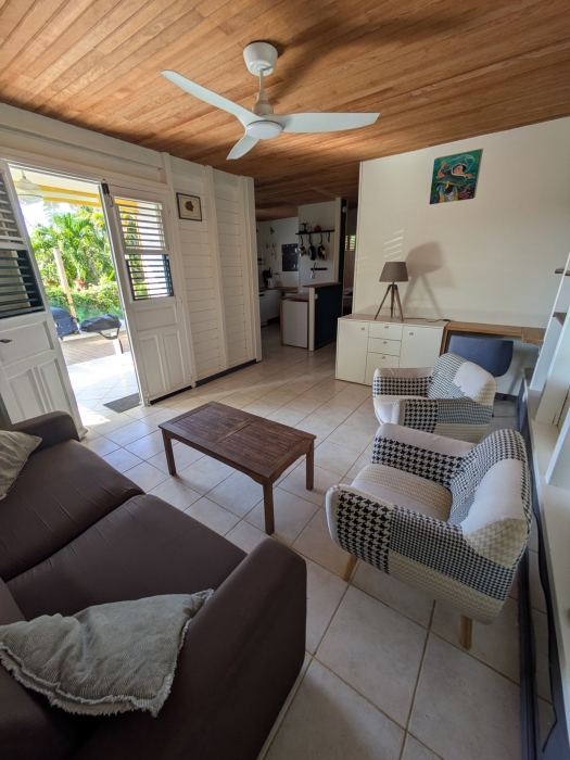 ACS Immobiliers vous propose dans un quartier très calme de Ducos une jolie maison F3 en bois avec jardin. La maison de plain-pied comprend un séjour, une cuisine aménagée, deux chambres climatisées dont une avec placard, une salle d' eau, une terrasse couverte et un deck. cette jolie maison est idéal pour un premier achat, dans un cadre verdoyant et calme. Dans le jardin vous trouverez ses bananiers, brisée, du doliprane, du thym, de la citronnelle et du citron punch. La maison est actuellement louée en meublé et le bail se termine fin janvier 2027. Loyer 1050€ plus 70€ de charges.