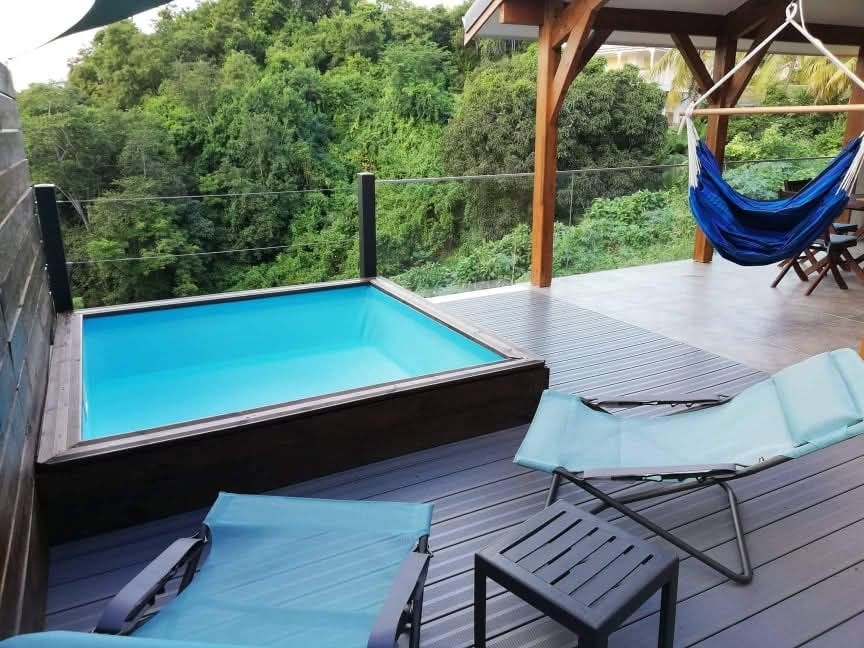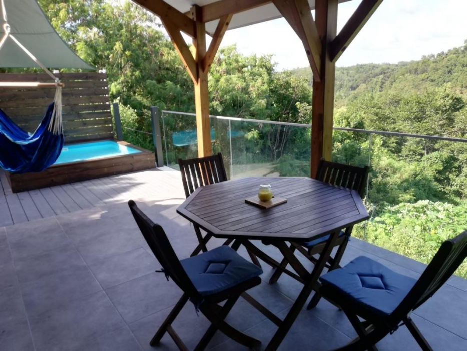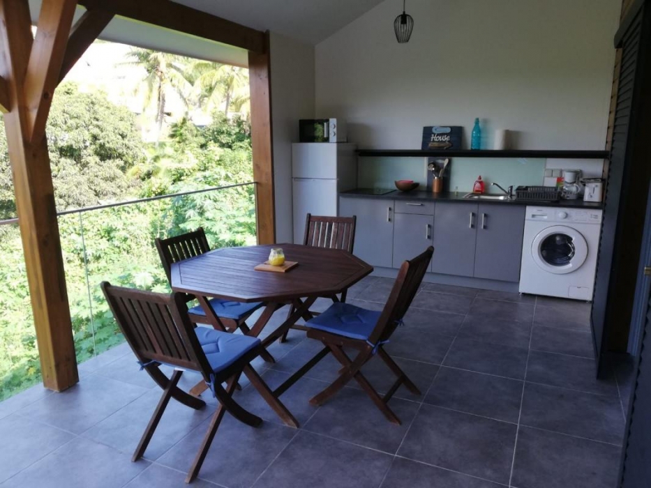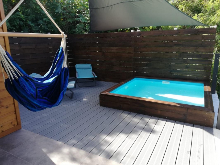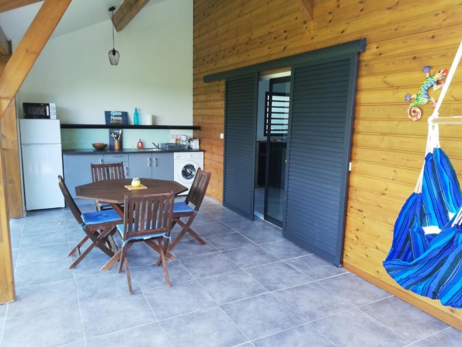 Un bungalow actuellement loué avec terrasse de 30 m², générant un revenu mensuel de 1 100 €.