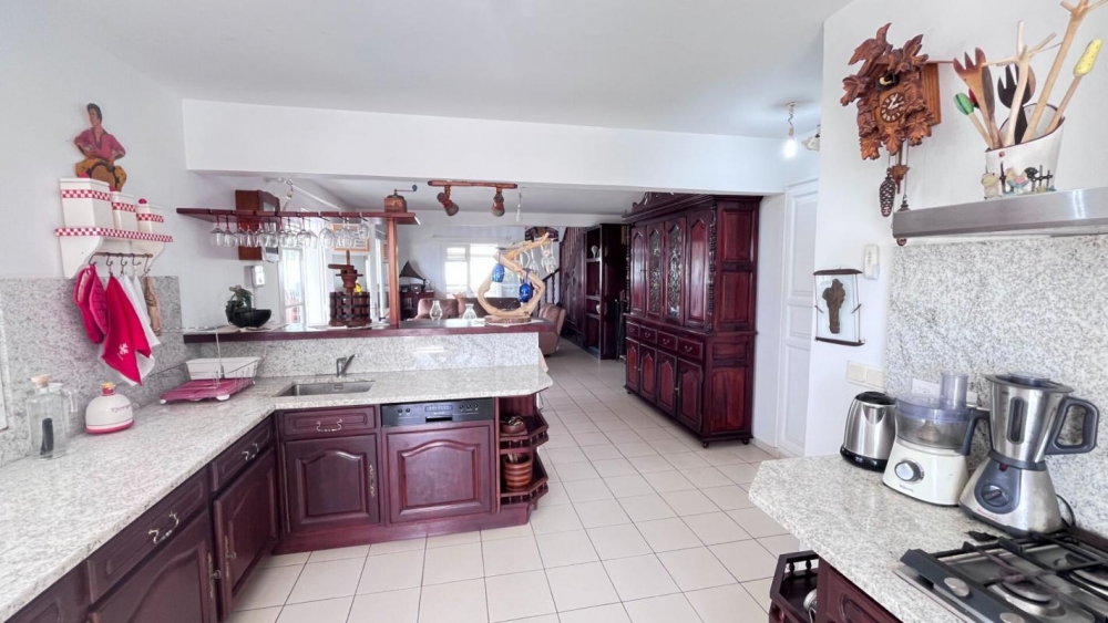 Profitez d'un cadre idyllique. Édifiée sur un magnifique jardin tropical de 2200 m² riche de nombreux arbres fruitiers et plantes, cette villa parfaitement entretenue offre un environnement paisible et verdoyant, idéal pour les amoureux de nature et de grands espaces. Confort et détente sont au rendez-vous.