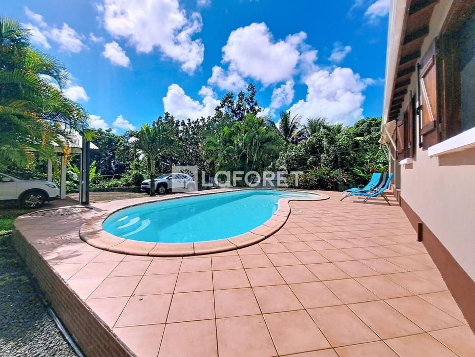L'agence Laforêt Baie-Mahault vous propose en exclusivité au Lamentin, une villa de type F4 avec piscine, édifiée sur un terrain arboré de 800m² entièrement clôturé et fermée par un portail motorisé. Composée d'un séjour en L, d'une cuisine américaine et son cellier attenant, de trois chambres climatisées avec dressing, de deux salles d'eau dont une avec WC et de toilettes indépendantes, cette villa conviendra parfaitement à une famille en quête d'un nouveau toit! Une terrasse de près de 25m² donnant sur une piscine au sel vient agrémenter le tout pour profiter de moments conviviaux en famille ou entre amis. Un carport pour deux véhicules, un cabanon de jardin complètent l'ensemble; une citerne enterrée pallie aux éventuelles coupures d'eau et des panneaux solaires assurent une autonomie énergétique! Située sur la Route de Boisbert, proche de toutes commodités, Jarry est accessibles en 15 mn ! En résumé l'agence Laforêt vous propose en exclusivité cette jolie villa de type F4 proche de toutes commodités au Lamentin. Pour plus de renseignements appelez Brigitte au xx-xx-xx-xx-xx Les informations sur les risques auxquels ce bien est exposé sont disponibles sur le site Géorisques : www.georisques.gouv.fr Brigitte TREBOS (EI) Agent Commercial - Numéro RSAC : 900314899 - PAP.