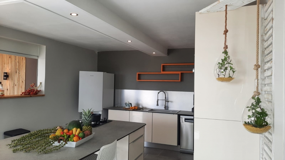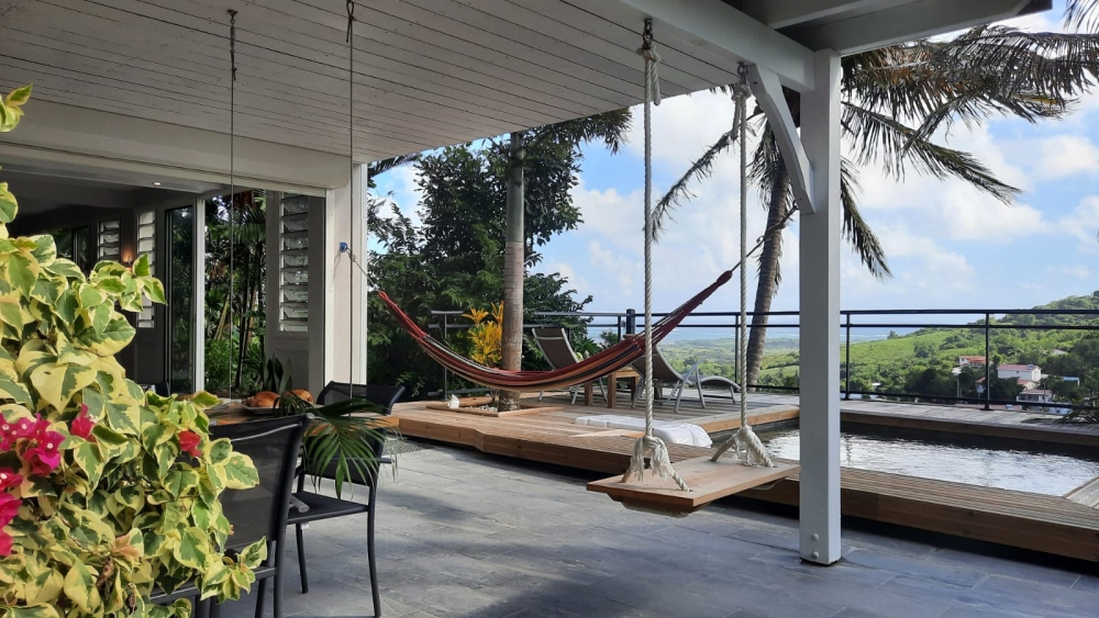 ACS IMMOBILIERS vous invite à découvrir cette magnifique villa sur deux niveaux, entièrement rénovée avec goût et raffinement, située dans un quartier résidentiel très recherché du Marin. Offrant un cadre de vie paisible, sans aucun vis-à-vis, elle bénéficie d’une vue dégagée sur la mer et la campagne environnante. Au rez-de-chaussée, un T3 indépendant vous accueille avec deux chambres dont une suite parentale, une cuisine ouverte sur une belle terrasse prolongée par un deck et une piscine, idéale pour profiter des journées ensoleillées. Cet espace est régulièrement loué en saisonnier, offrant un excellent rendement locatif. À l’étage, un superbe T5 propose quatre chambres dont une suite parentale, un gigantesque séjour lumineux avec billard, ainsi qu’une cuisine moderne ouverte sur le séjour et la grande terrasse. L’ensemble est en parfait état général, ventilé et baigné de lumière naturelle. La propriété dispose de stationnements intérieurs et extérieurs, dans un environnement calme et verdoyant. Un véritable havre de paix, parfait pour une grande famille ou un projet d’investissement locatif.