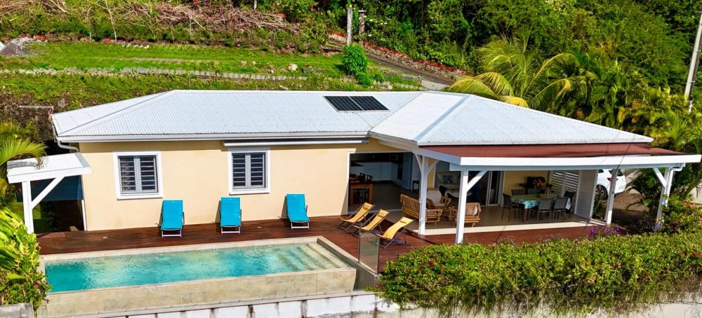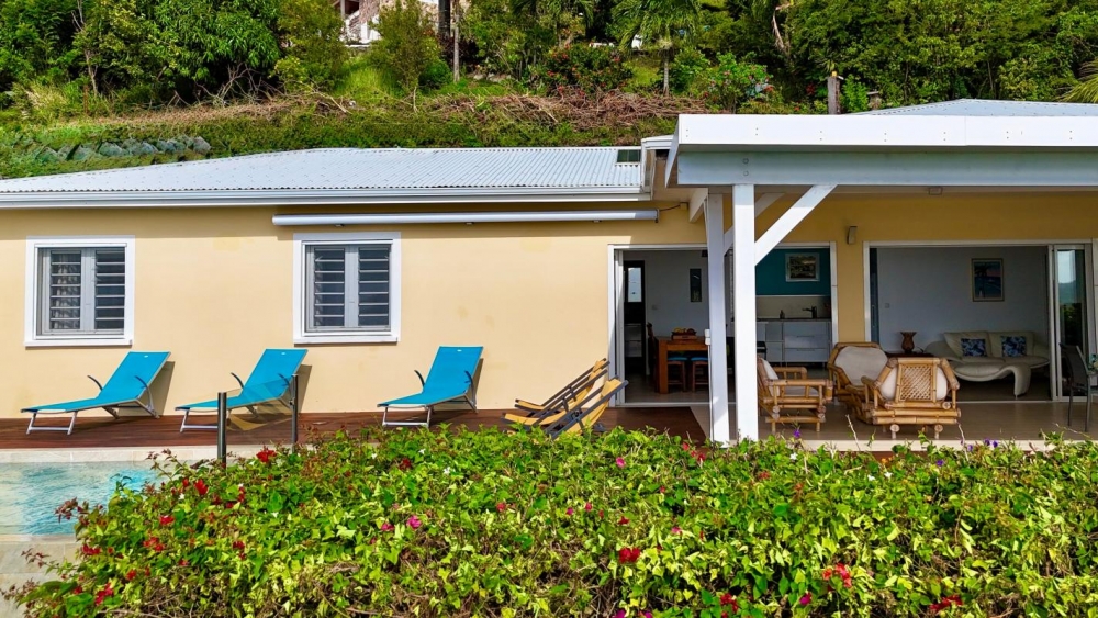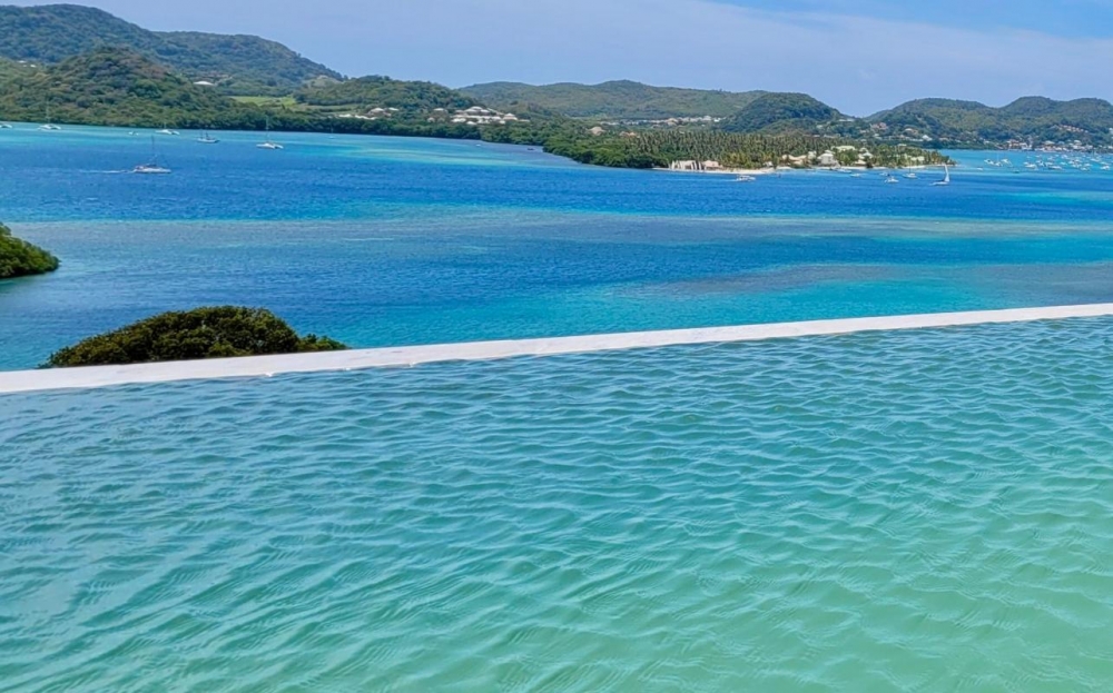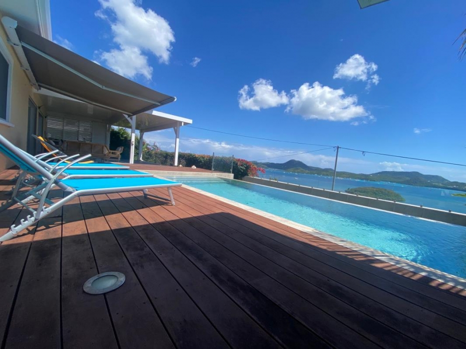 Superbe maison récente (année 2020) aux prestations haut de gamme, offrant une vue panoramique exceptionnelle et imprenable sur la baie du Marin.